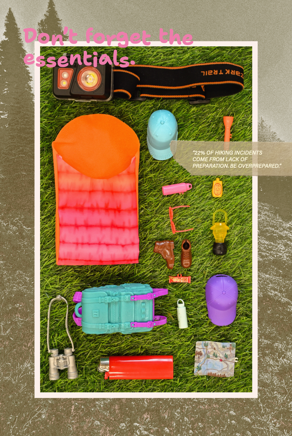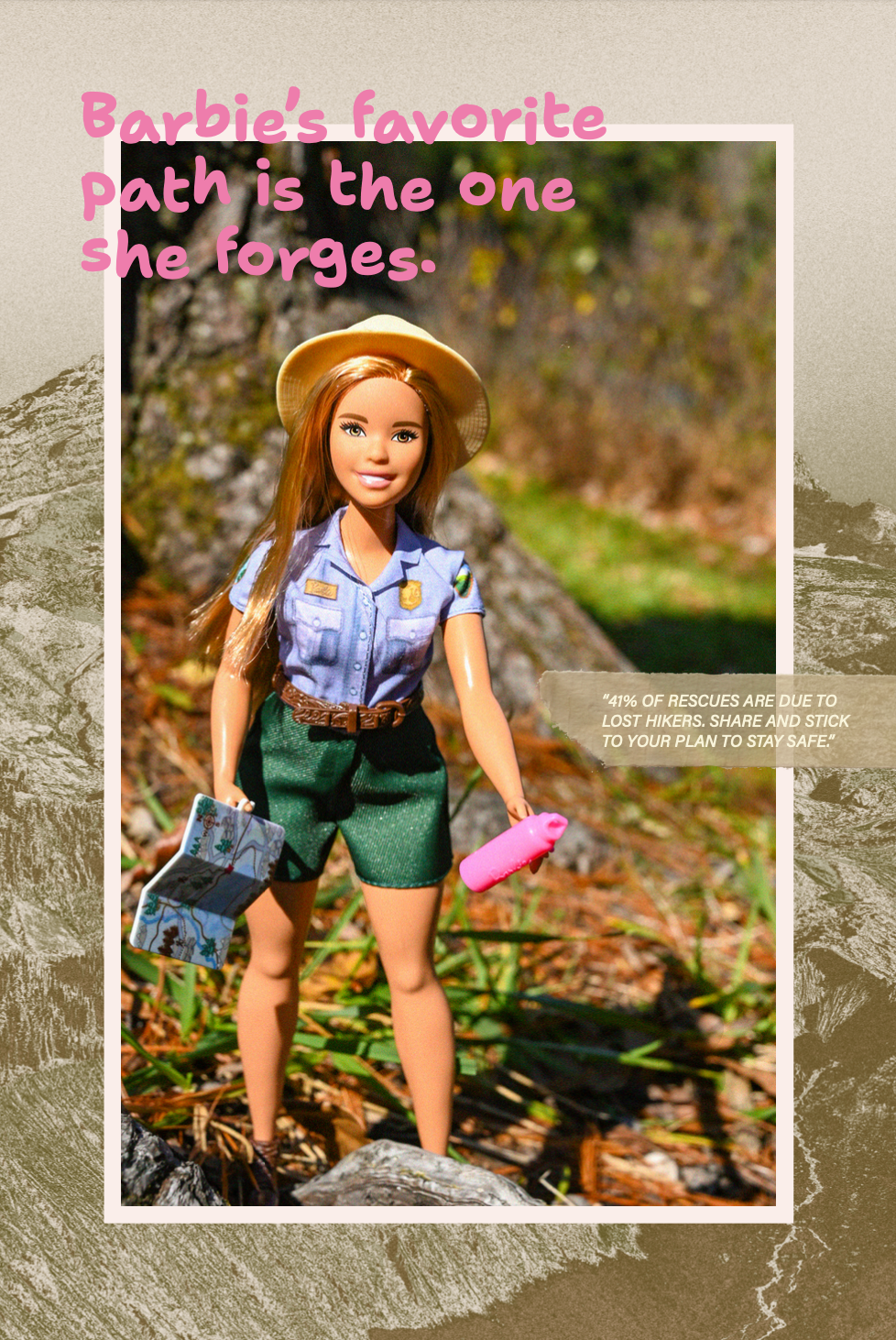 I created a collaborative campaign with Barbie to bring awareness to the beauty of the outdoors, while also spreading information about what the true dangers are, out on the trail.